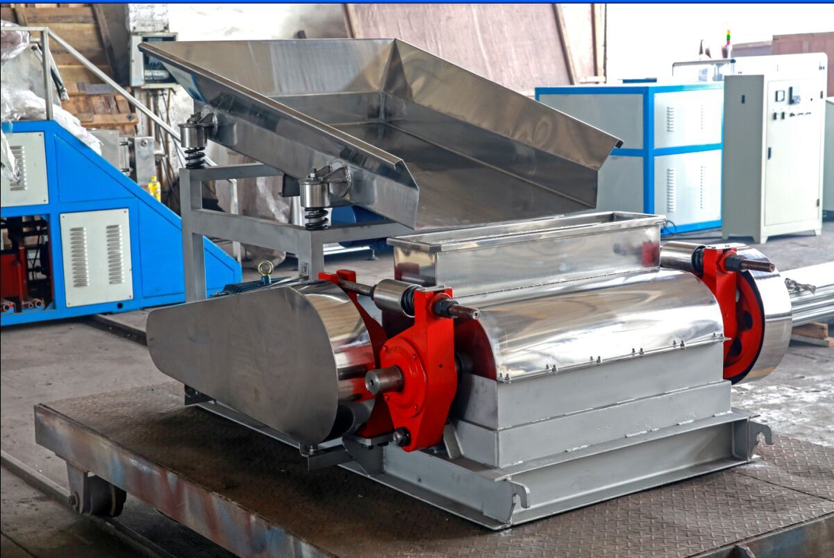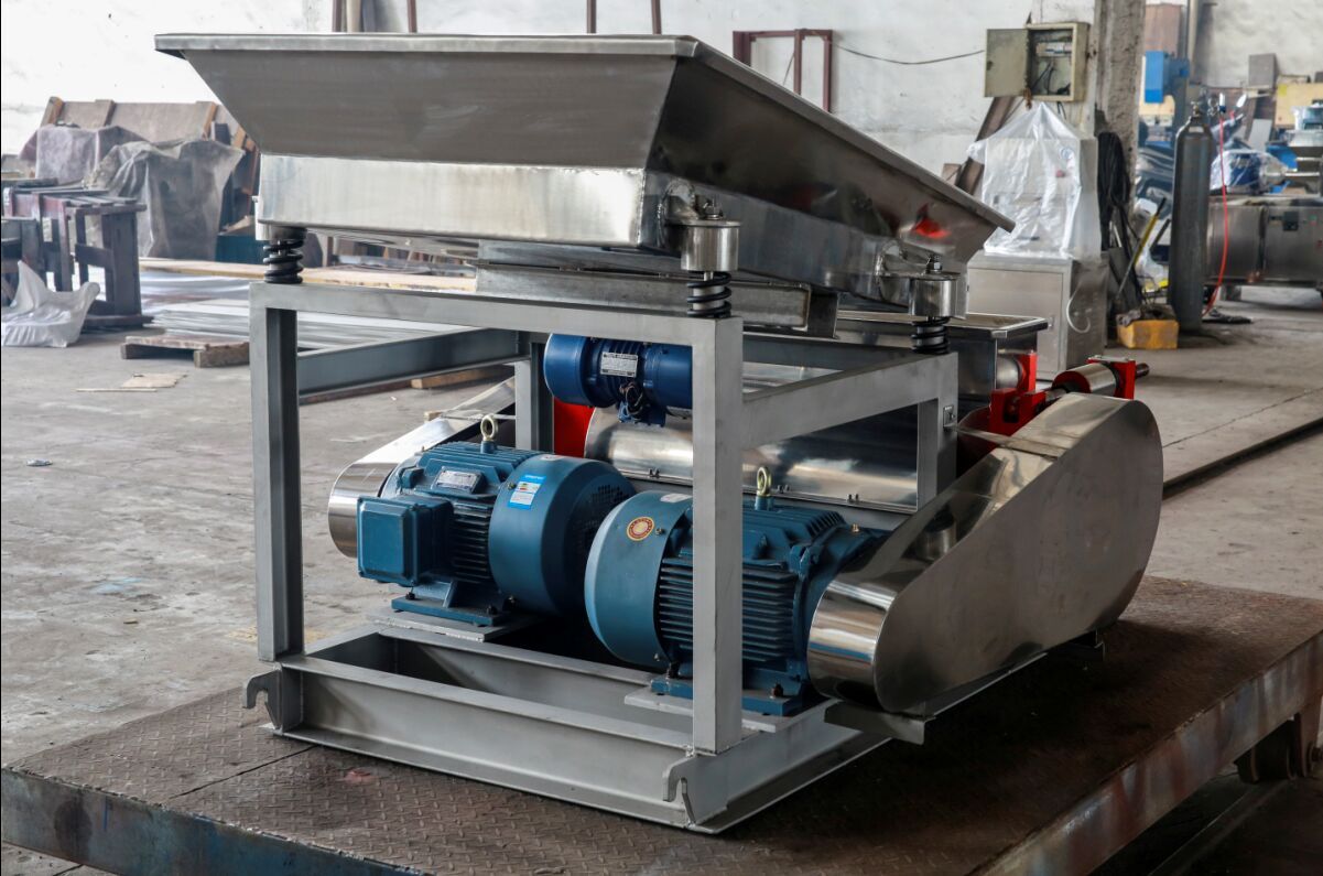 且維修方便,過載保護靈敏,安全可靠等特點,其他形式的粉碎機都不能保證鹽的粒度,一般過粉碎率要遠遠高于對輥粉碎機。